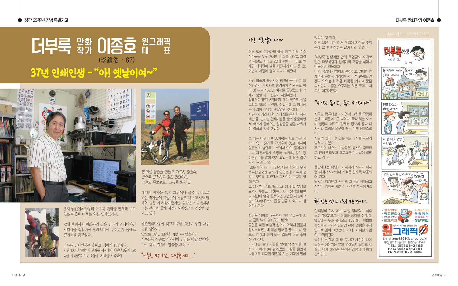 본지 월간인쇄마당의 더부룩 만화를 연재해 주고있는 이종호 대표는 외길 인쇄인이다.