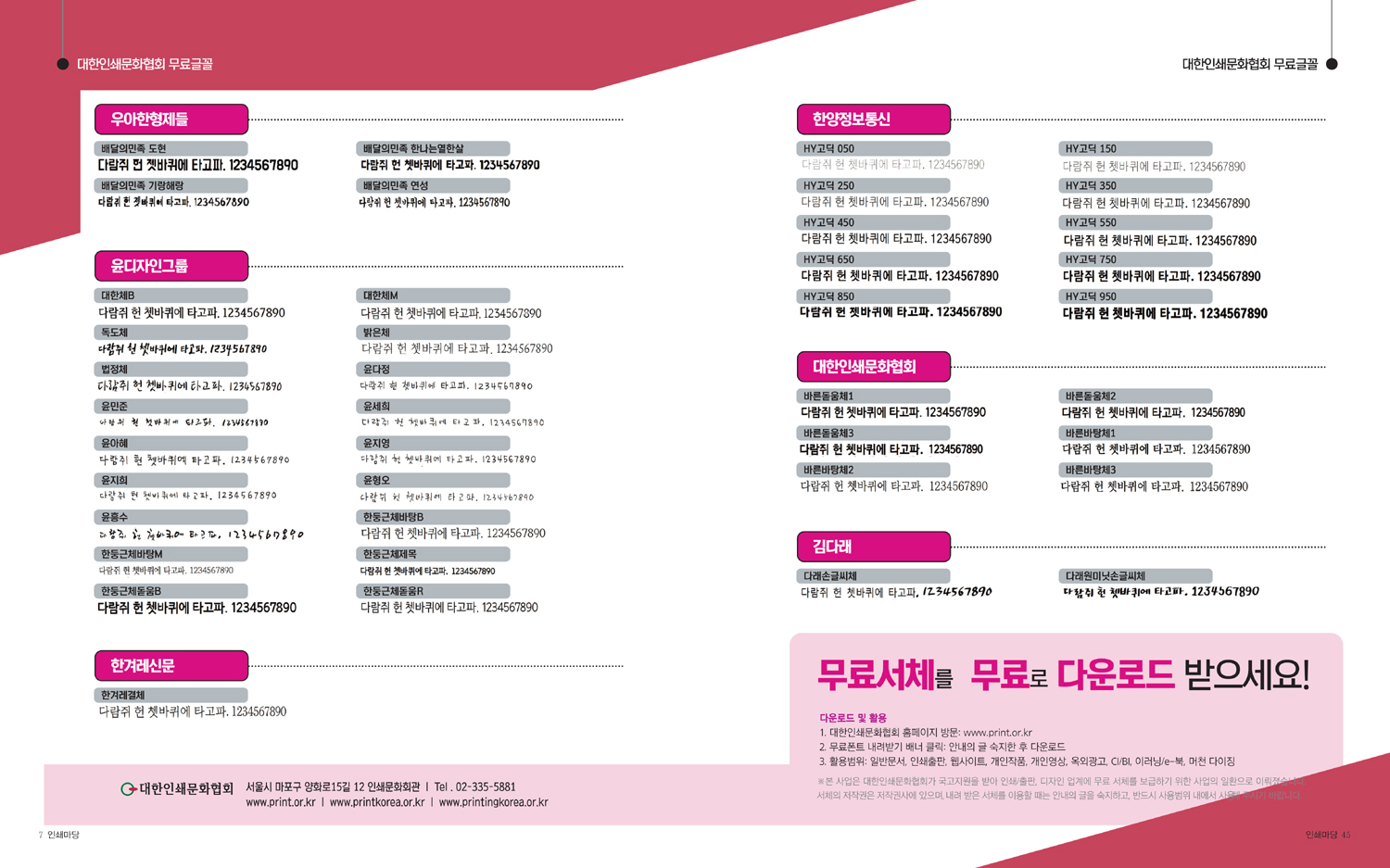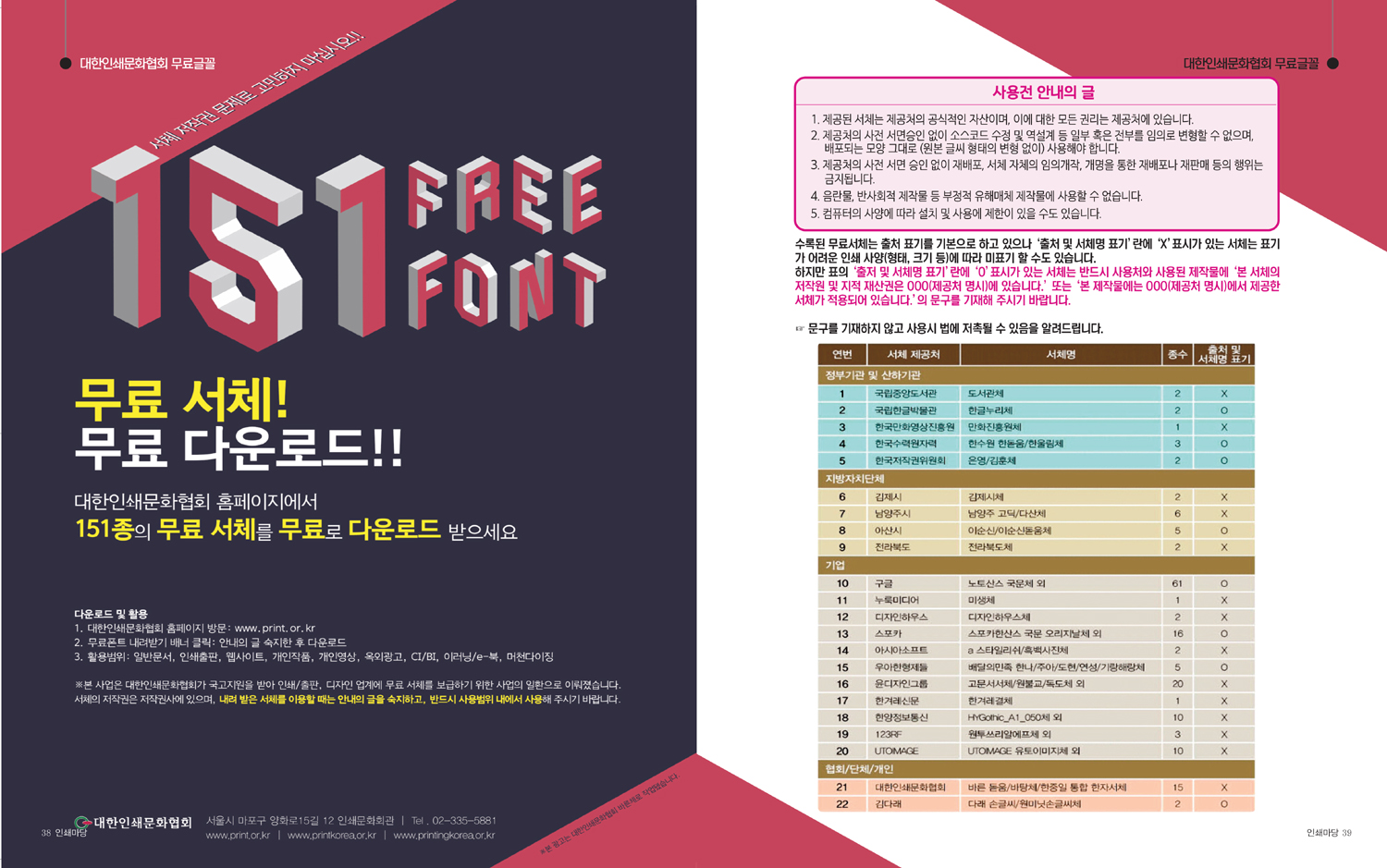 대한인쇄문화협회 홈피 http://www.print.or.kr ▶오른쪽 배너 [무료폰트 내려받기] ▶[사용안내 서체목록] 밑 [확인] 클릭 ▶※ 내려받기 원하시는 서체 선택
